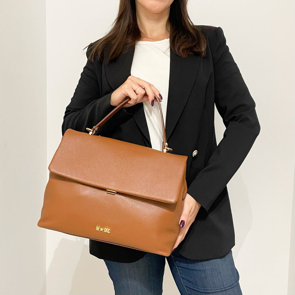 Questo modello molto semplice ed elegante è dotata di un solo manico per portarla a mano. Si apre con patta con bottone ed al suo interno è dotato di una tasca con cerniera.