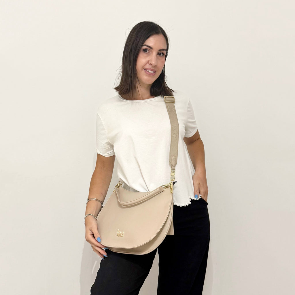 Borsa dalla forma arrotondata a mezzaluna, raffinata e di tendenza, perfetta per ogni occasione.