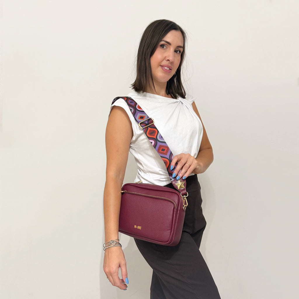 La linea OBONA è realizzata in vera pelle effetto dollaro molto morbida e la sua particolarità è quella di avere in dotazione una tracolla in tessuto in fantasia che la rende accattivante e unica!