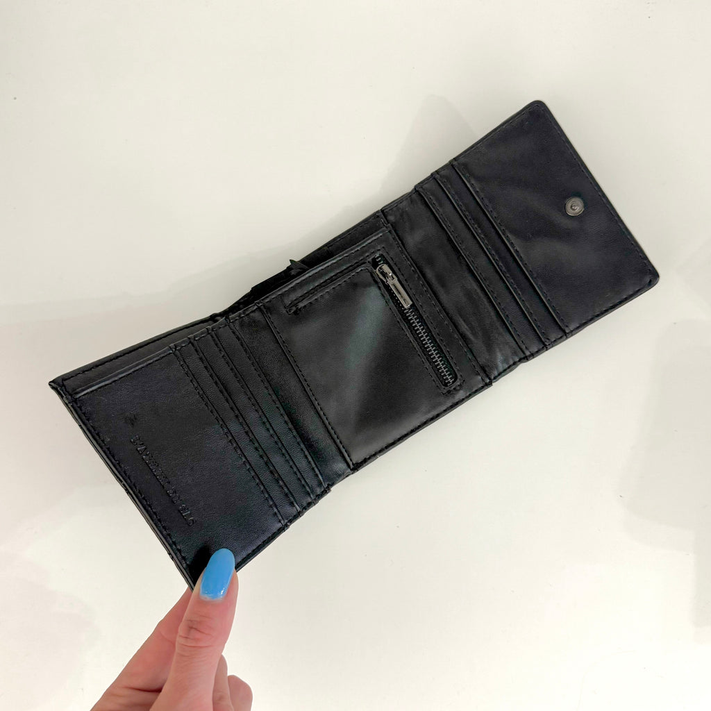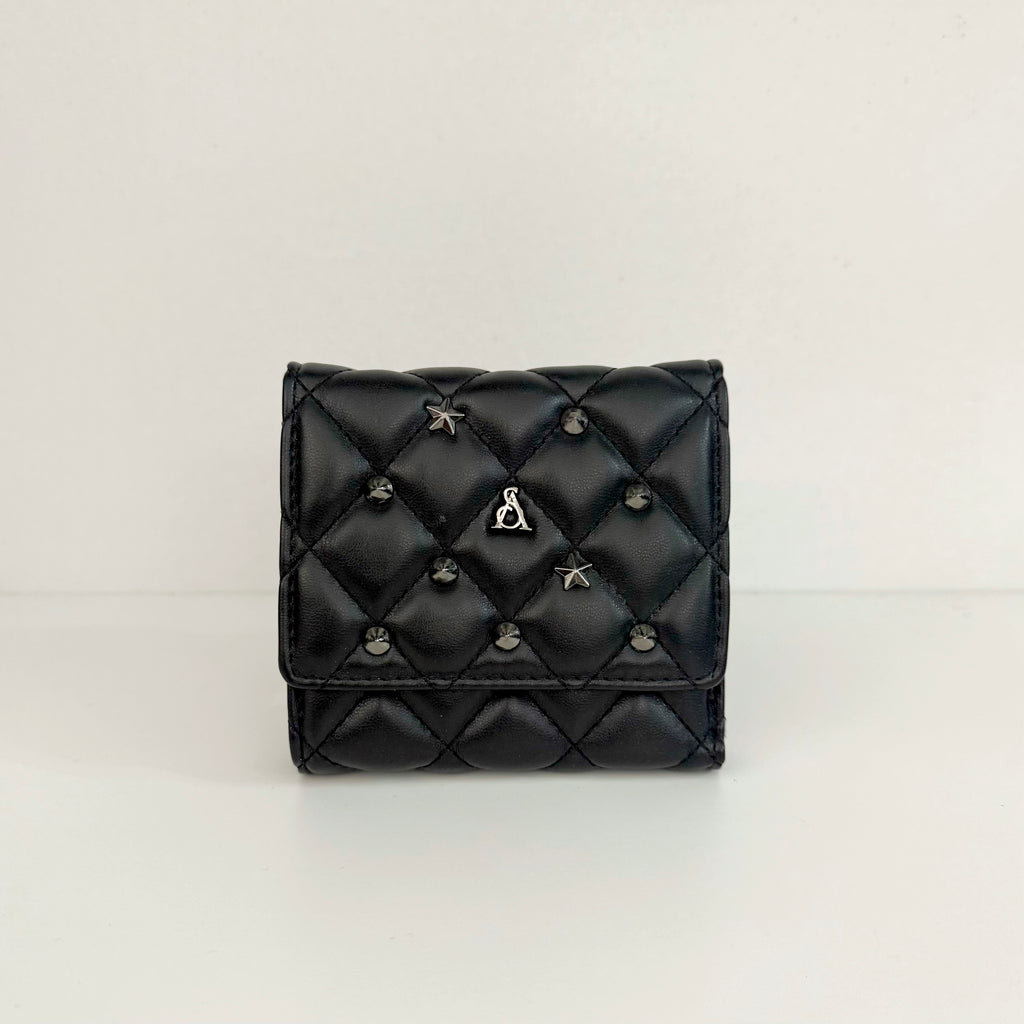 Portafoglio piccolo realizzato in similpelle trapuntata nera con micro borchie.