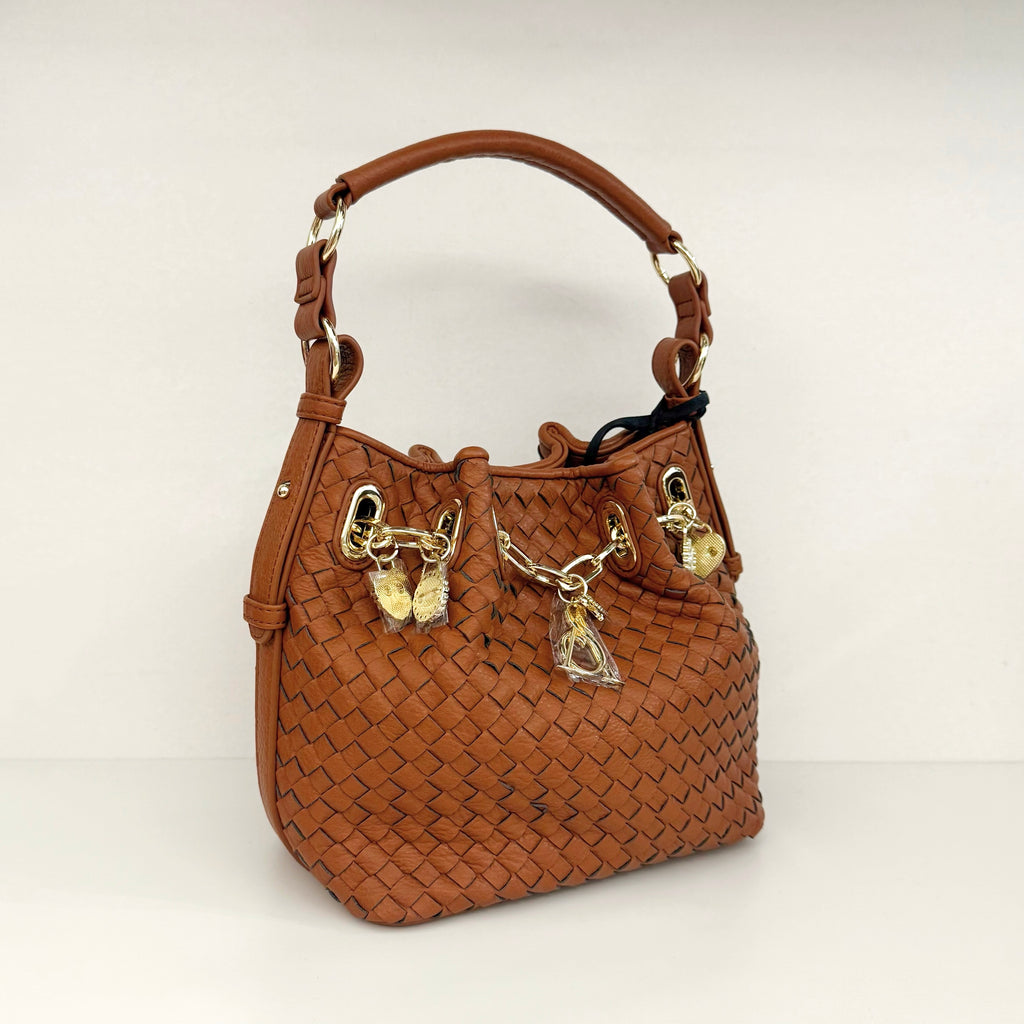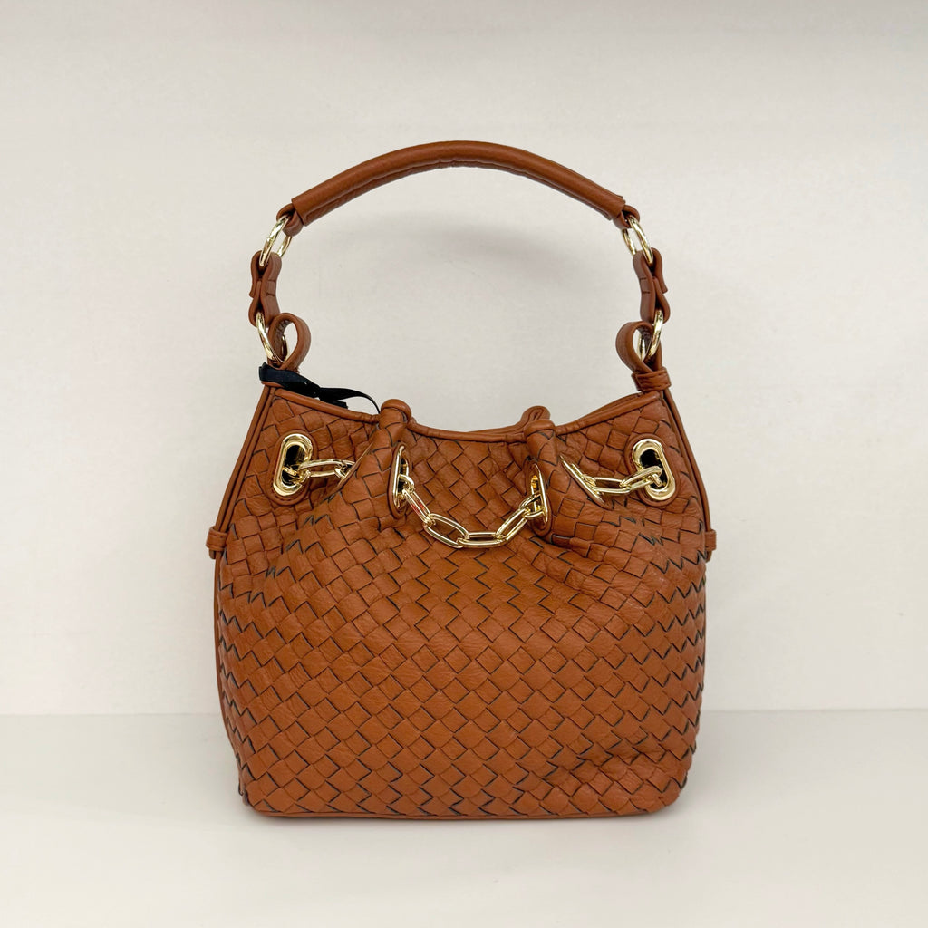 La borsa a secchiello in similpelle intrecciata di Atelier du Sac è un accessorio che unisce artigianalità e stile contemporaneo. La lavorazione a intreccio regala un effetto raffinato e senza tempo, mentre la forma morbida e capiente la rende pratica per l’uso quotidiano.