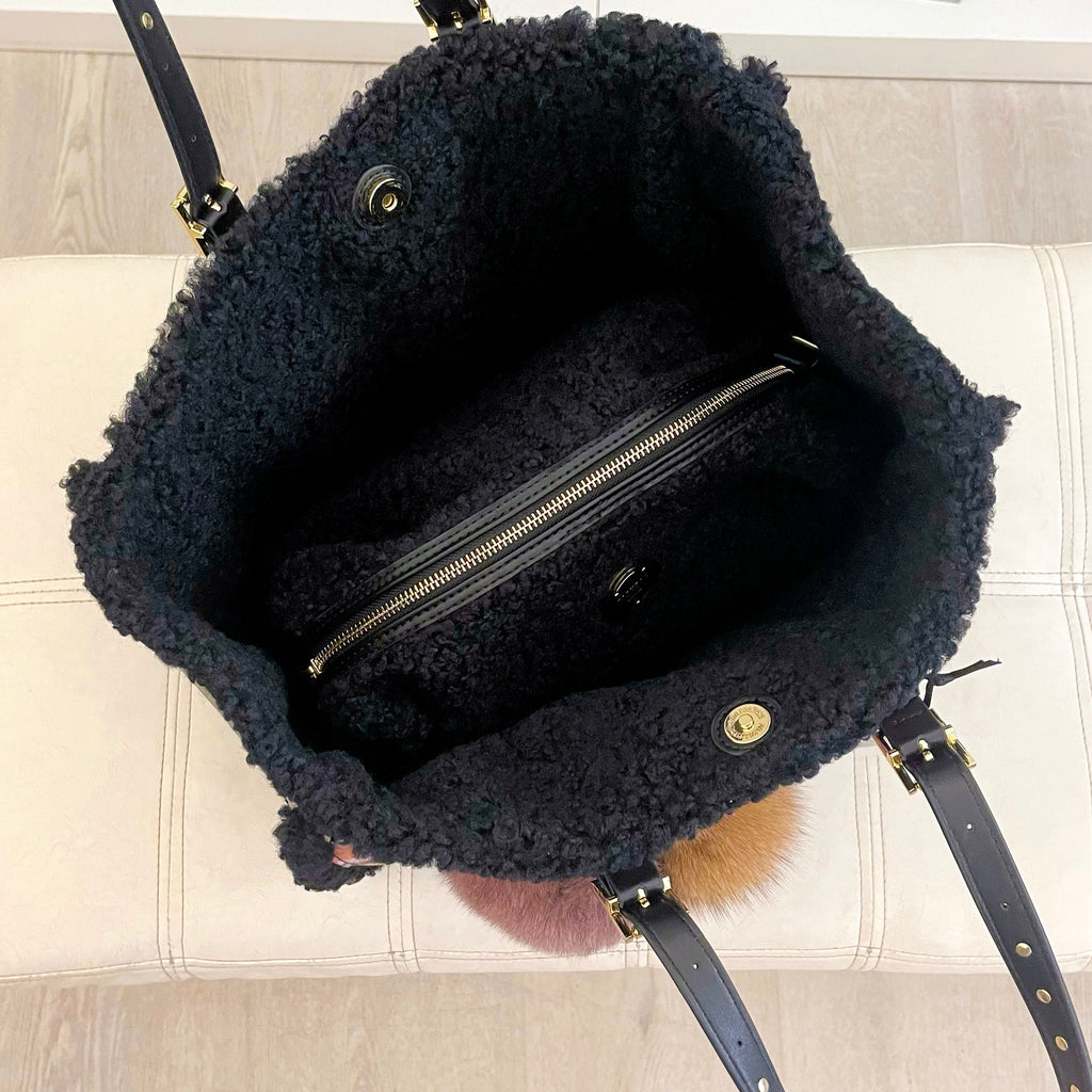 Maxi Shopper in fantasia con doppio PONPON in vera pelliccia come ciondolo.