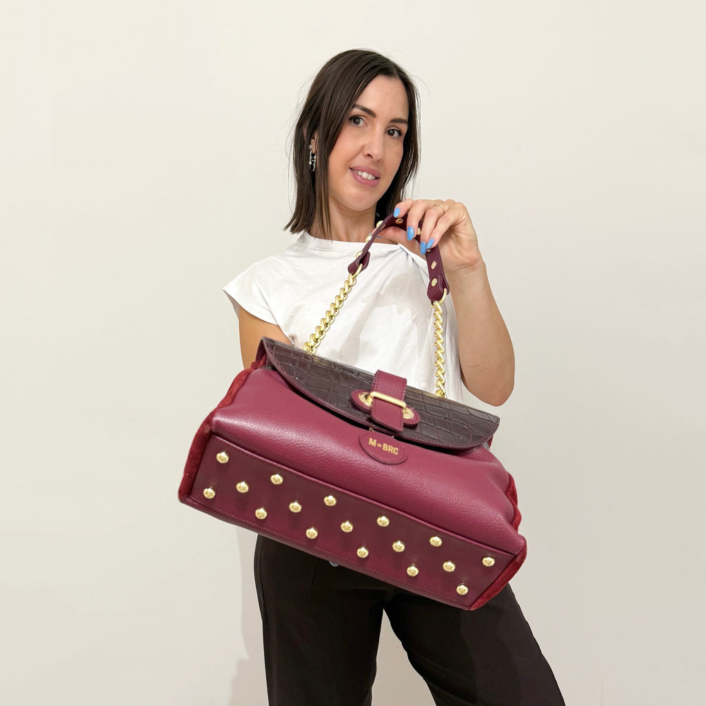 Una borsa grintosa e di carattere, perfetta per chi ama distinguersi. Realizzata in vera pelle bordeaux con inserti laterali in morbido suede e patta in stampa cocco, unisce eleganza e personalità.