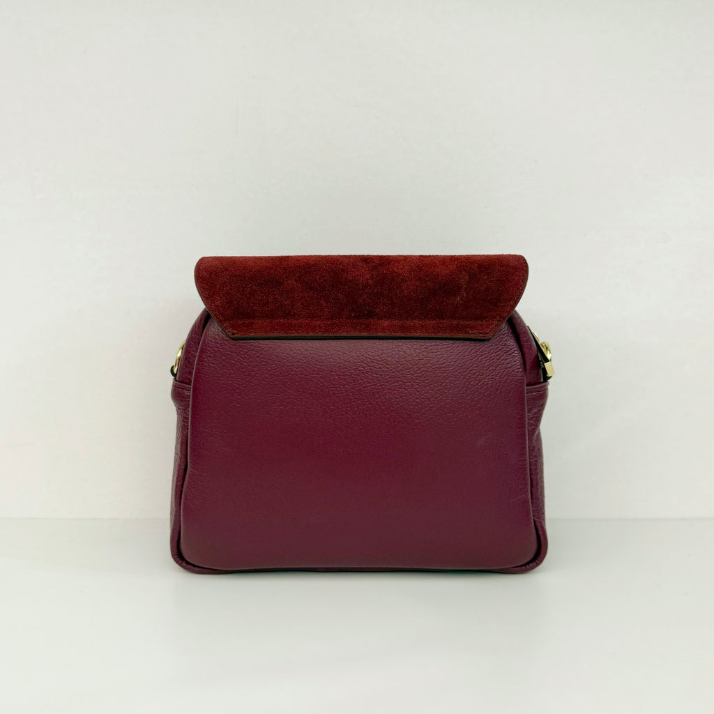 Un modello elegante e versatile, perfetto per chi cerca un accessorio raffinato ma pratico. La borsa è realizzata in vera pelle effetto dollaro con patta frontale in morbido suede che le dona un tocco sofisticato e ricercato.