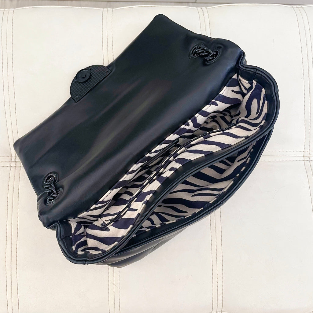 Un modello comodo da portare sia a spalla che a tracolla grazie alla catena scorrevole.